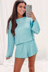 Long Sleeve Top & Shirred High Waist Shorts Pajama Set